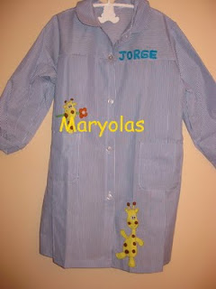 Este es uno de los mandilones que ha lucido mi niño este año. Los dibujos de las jirafas los saqué de internet (no me acuerdo de la página). Chuli, eh?